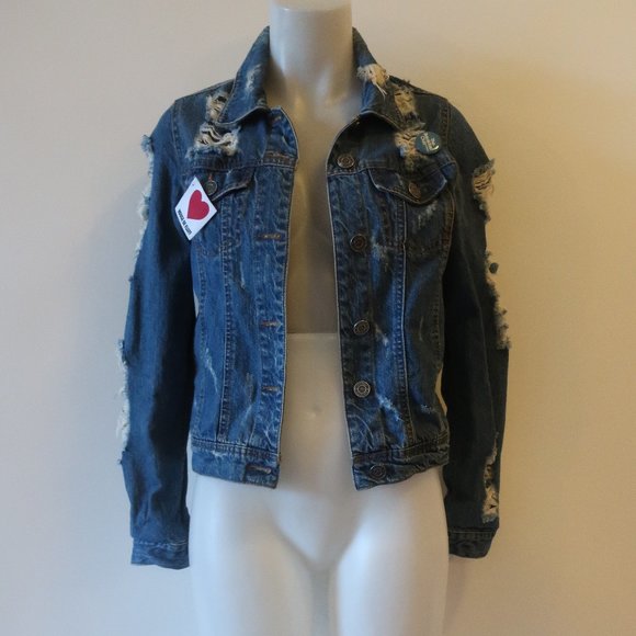 Jw Signature Jackets Coats Womens Jw Signature Blue Denim Distressed Button Denim Jacket M Poshmark